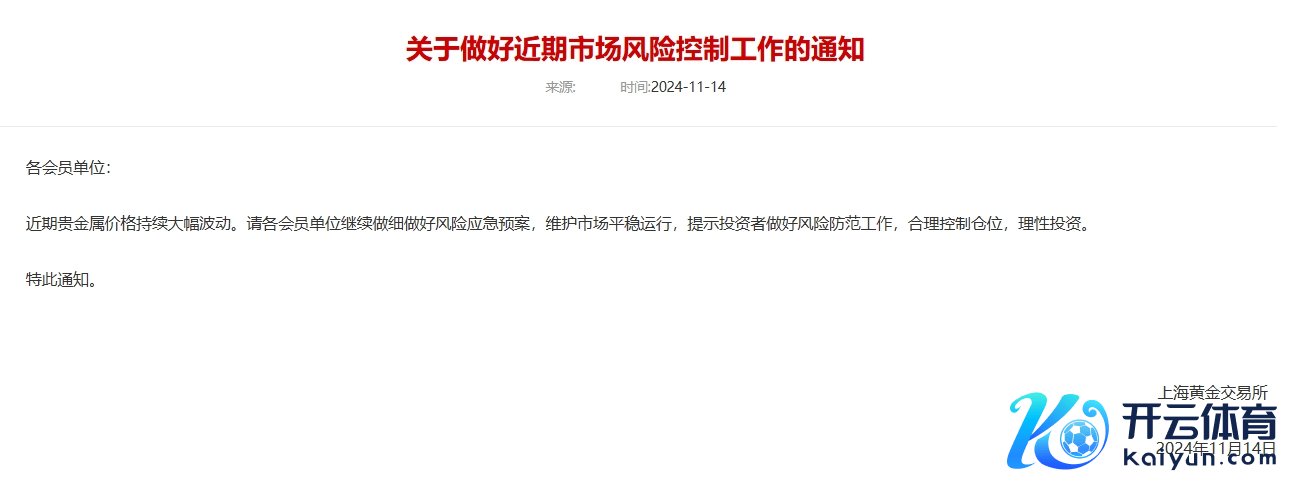 上海黄金往还所:作念好近期市集风险适度责任开云体育(中国)官方网站上海黄金往还所:作念好近期市集风险适度责任