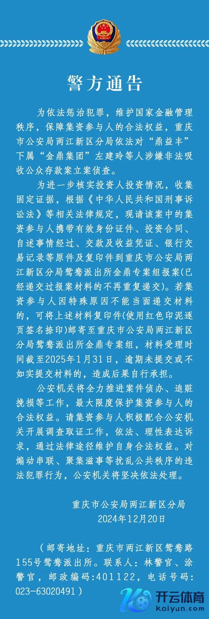 重庆警方:对“鼎益丰”下属“金鼎集团”左建玲等东说念主涉嫌作恶接纳公众入款案立案考察重庆警方:对“鼎益丰”下属“金鼎集团”左建玲等东说念主涉嫌作恶接纳公众入款案立案考察