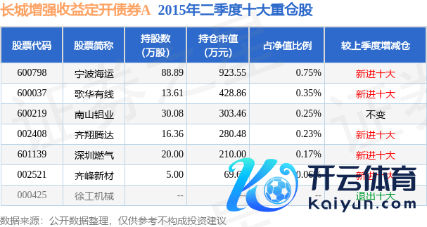 长城增强收益依期灵通债券A为债券型-搀杂一级基金,把柄最新一期基金季报泄漏,该基金财富成就:无股票类财富,债券占净值比105.67%,现款占净值比5.88%。基金十大重仓股如下: