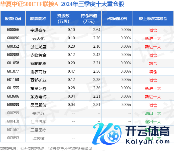 中原中证500ETF磋商A为指数型-股票基金,笔据最新一期基金季报闪现,该基金钞票成就:股票占净值比0.1%,债券占净值比0.04%,现款占净值比5.91%。基金十大重仓股如下: