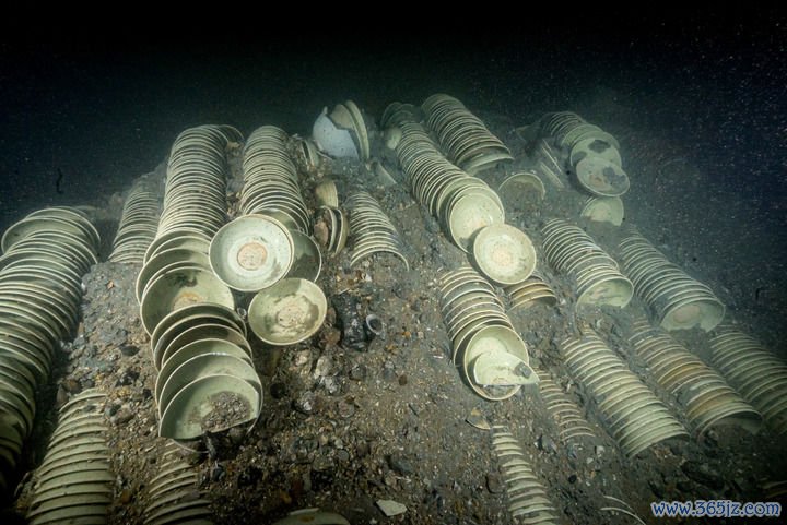 漳州圣杯屿元代沉船古迹船舱内码放的瓷器。(国度文物局供图)