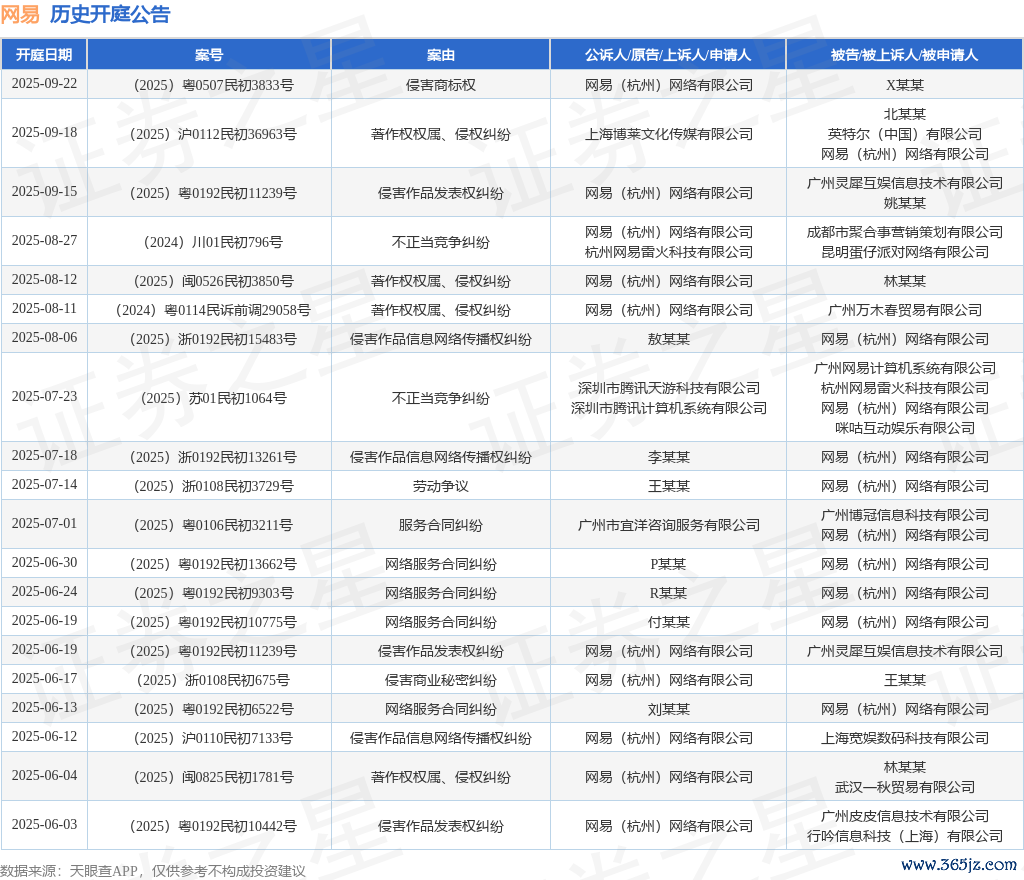 本站音信开云体育,凭据天眼查APP暴露,近日公布了一则网易(杭州)采集有限公司当作原告/上诉东谈主的开庭公告,详备实践如下: