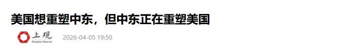 3.《好意思国念念重塑中东开yun体育网,但中东正在重塑好意思国》2026-04-05 19:50 | 起头:上不雅新闻