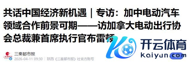 2.《共话中国经济新机遇|专访:加中电动汽车规模调解远景可期——访加拿大电动出行协会总裁兼首席实践官布雷顿》2026-04-11 09:30 | 起头:三秦齐市报