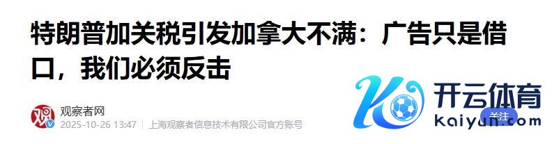 1.《特朗普加关税激发加拿大不悦:告白只是借口,咱们必须反击》2025-10-26 13:47 | 起头:不雅察者网